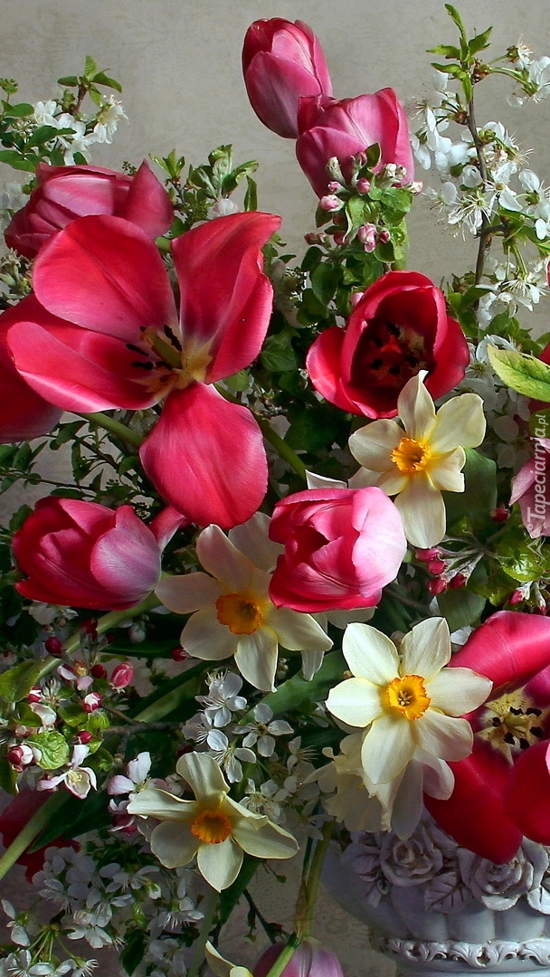 Edytor tapety: Bukiet tulipanów i narcyzów