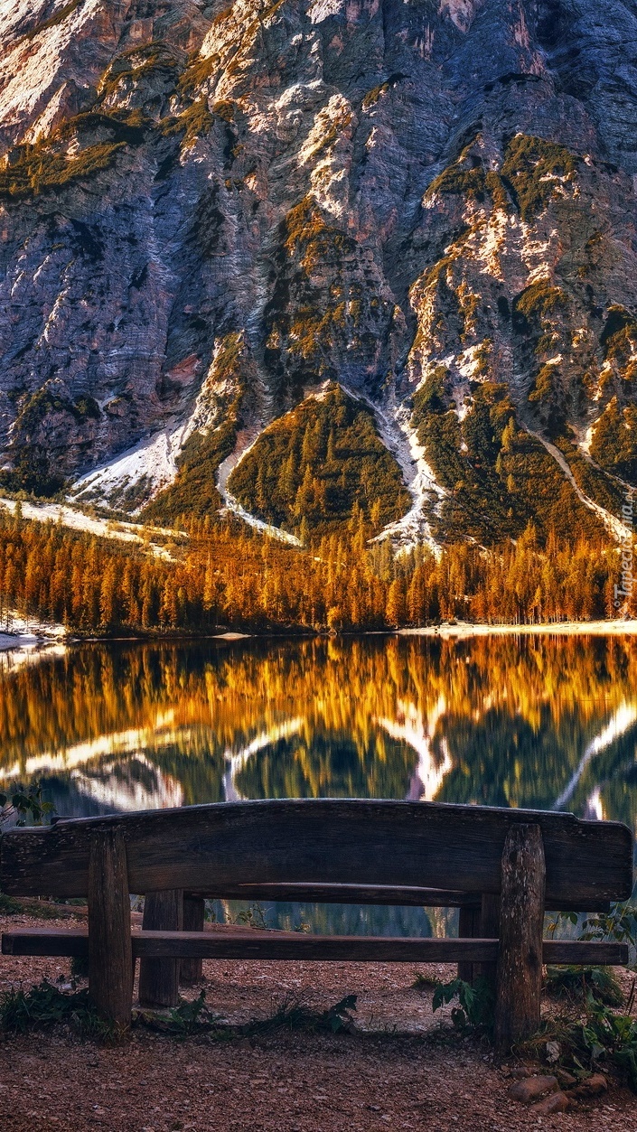 Edytor tapety: Ławka nad jeziorem Pragser Wildsee