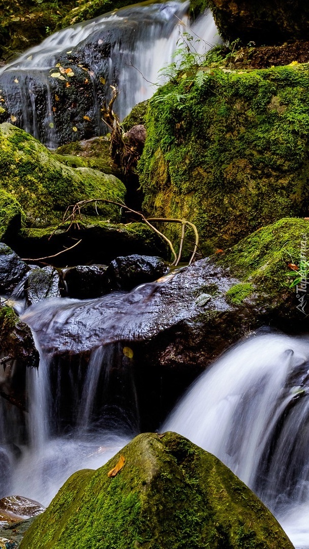 Edytor tapety: Omszone skały w strumieniu