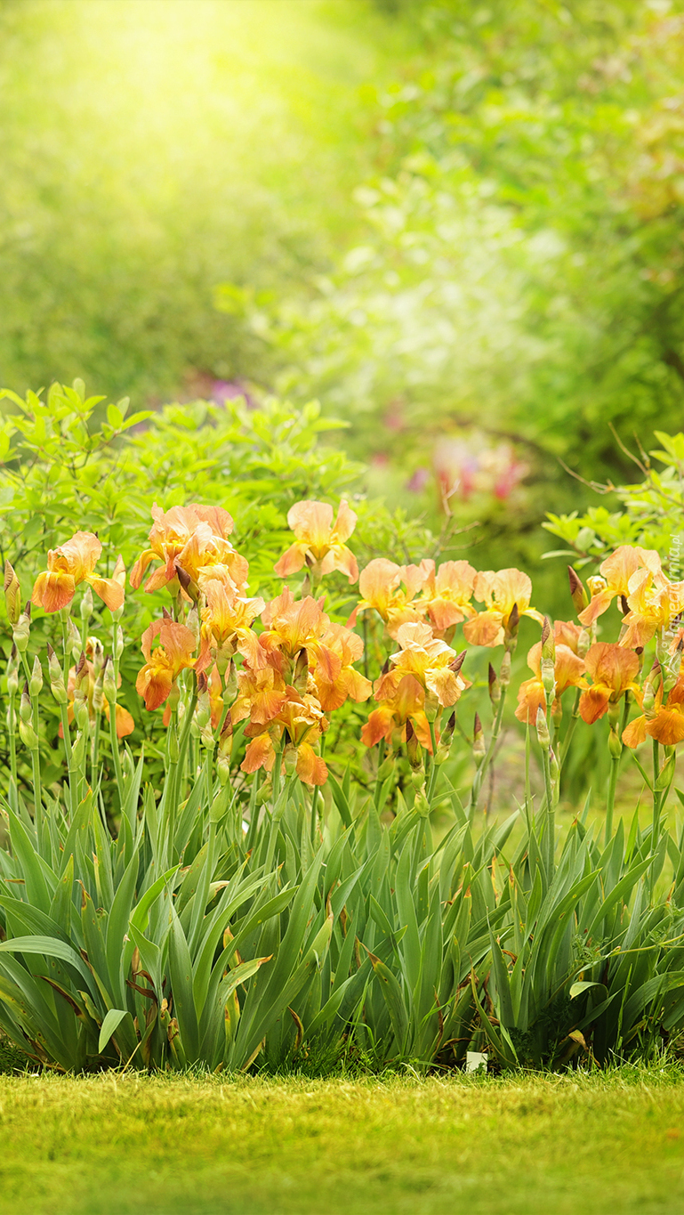 Edytor tapety: Pomarańczowe irysy w ogrodzie