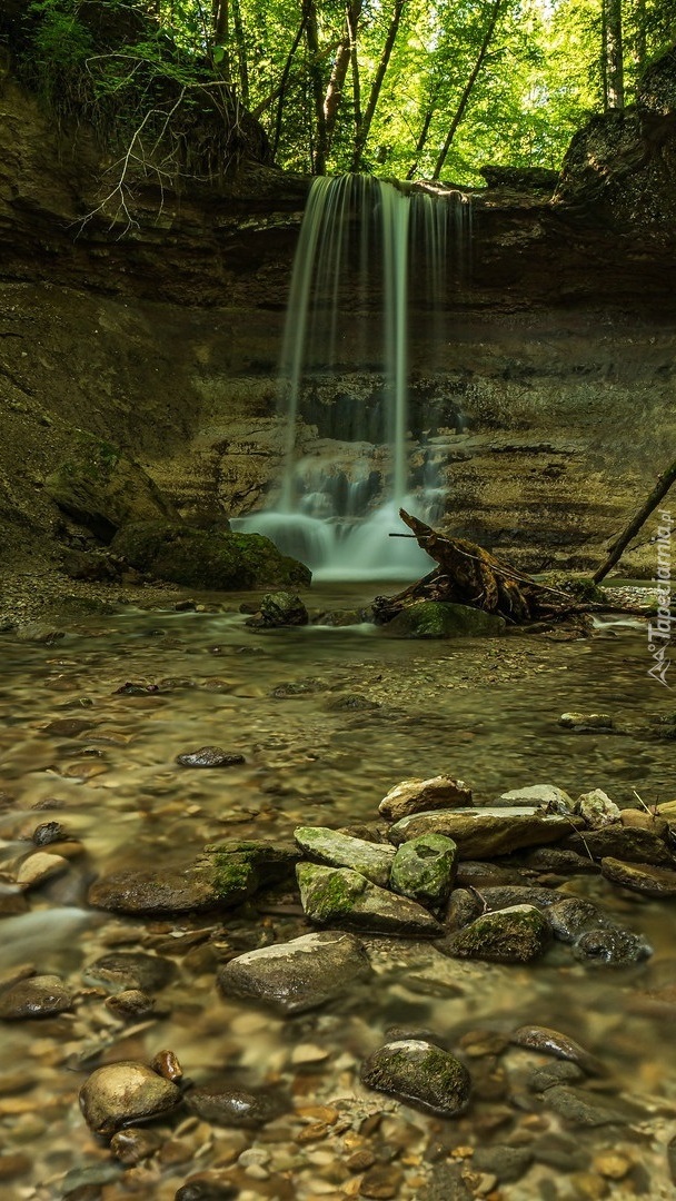 Edytor tapety: Mały wodospad w lesie
