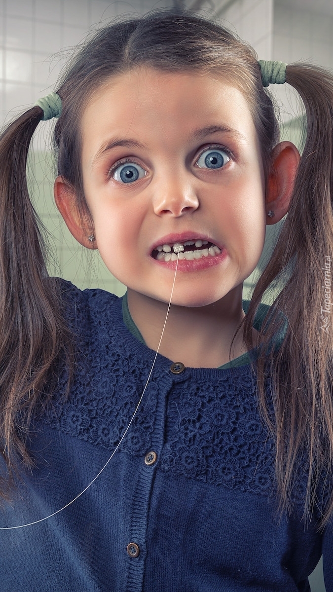 Edytor tapety: Dziewczynka z nitką na zębie