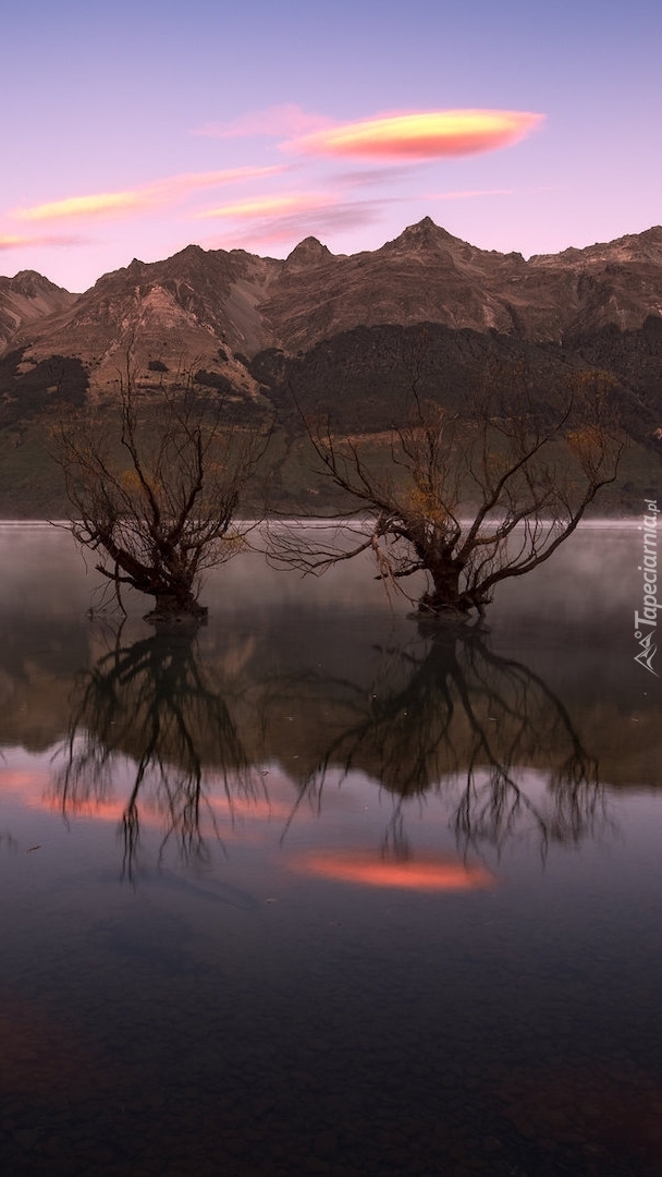 Edytor tapety: Dwie wierzby w jeziorze Wakatipu