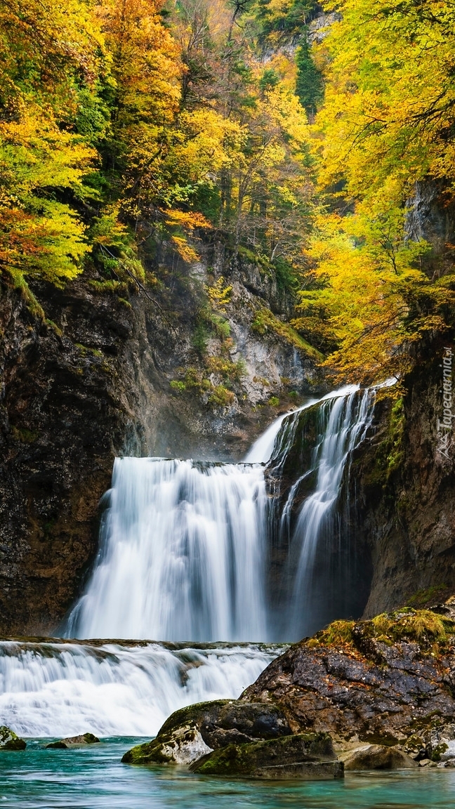 Edytor tapety: Wodospad wpadający do rzeki Rio Arazas