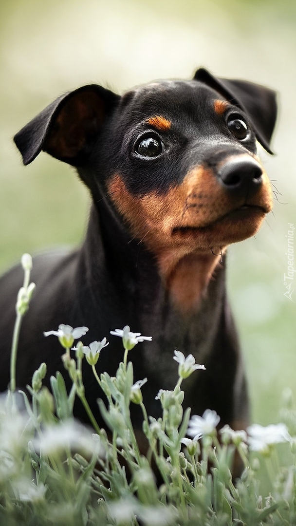 Edytor tapety: Pies wśród białych kwiatów