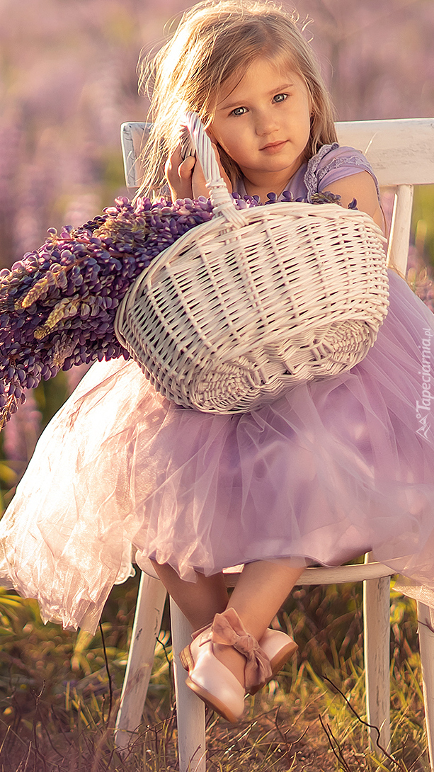 Edytor tapety: Dziewczynka na krześle z koszem łubinu