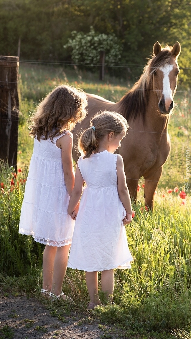 Edytor tapety: Dziewczynki obok konia