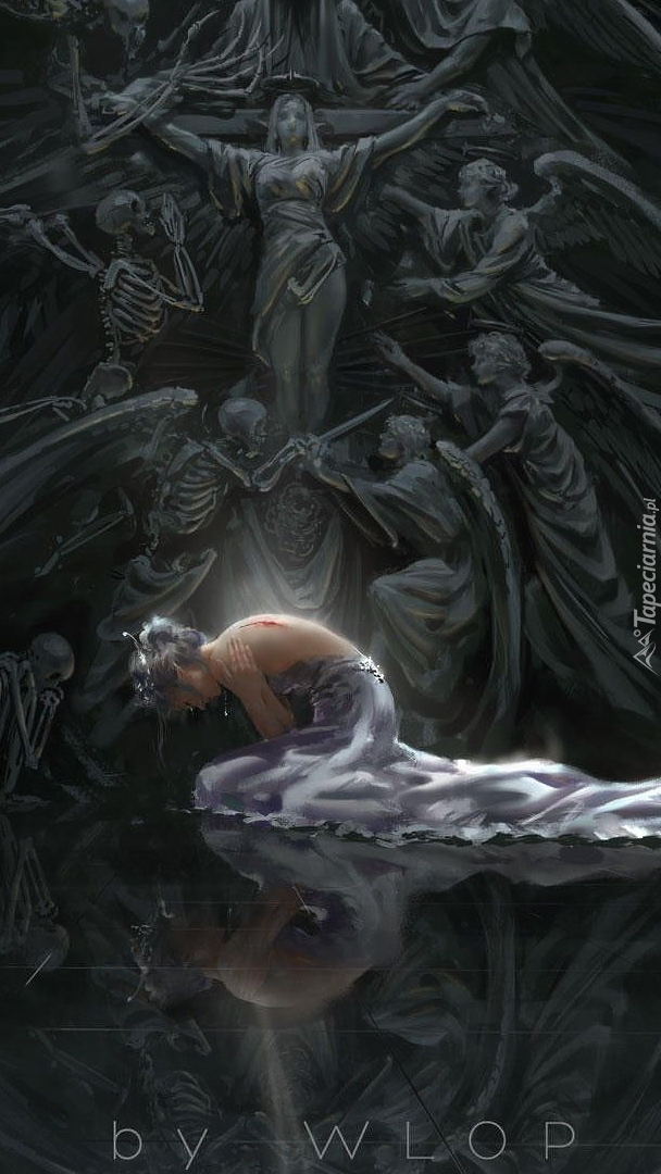 Edytor tapety: Skulona dziewczyna pod rzeźbą na skale