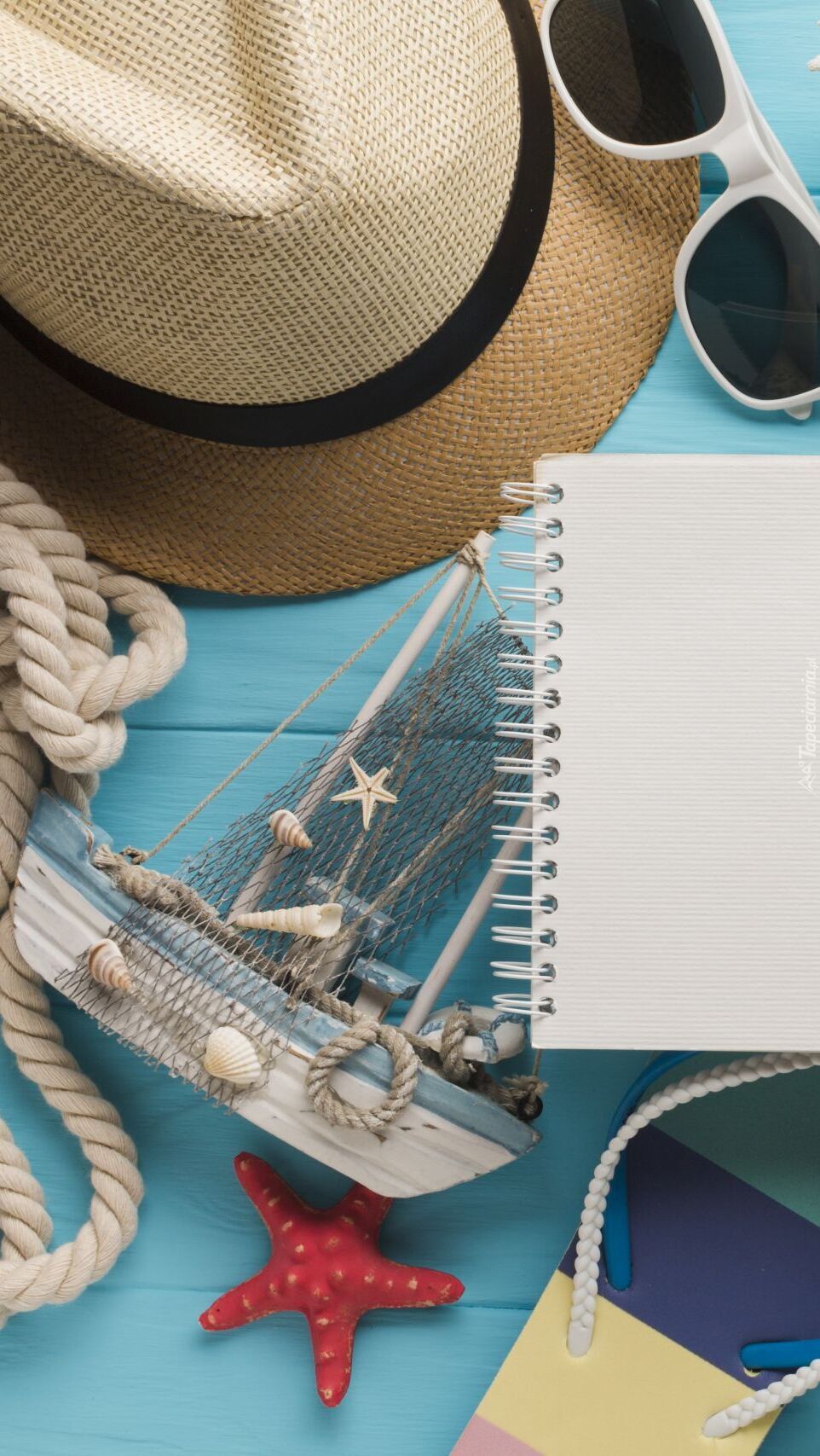 Edytor tapety: Kapelusz obok okularów i notesu