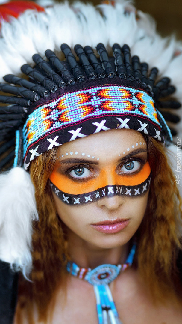 Edytor tapety: Pomalowana twarz dziewczyny w pióropuszu