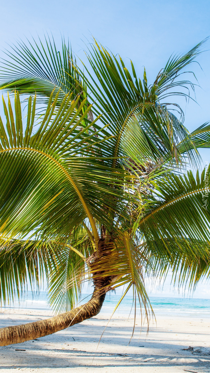 Edytor tapety: Pochyła palma na plaży