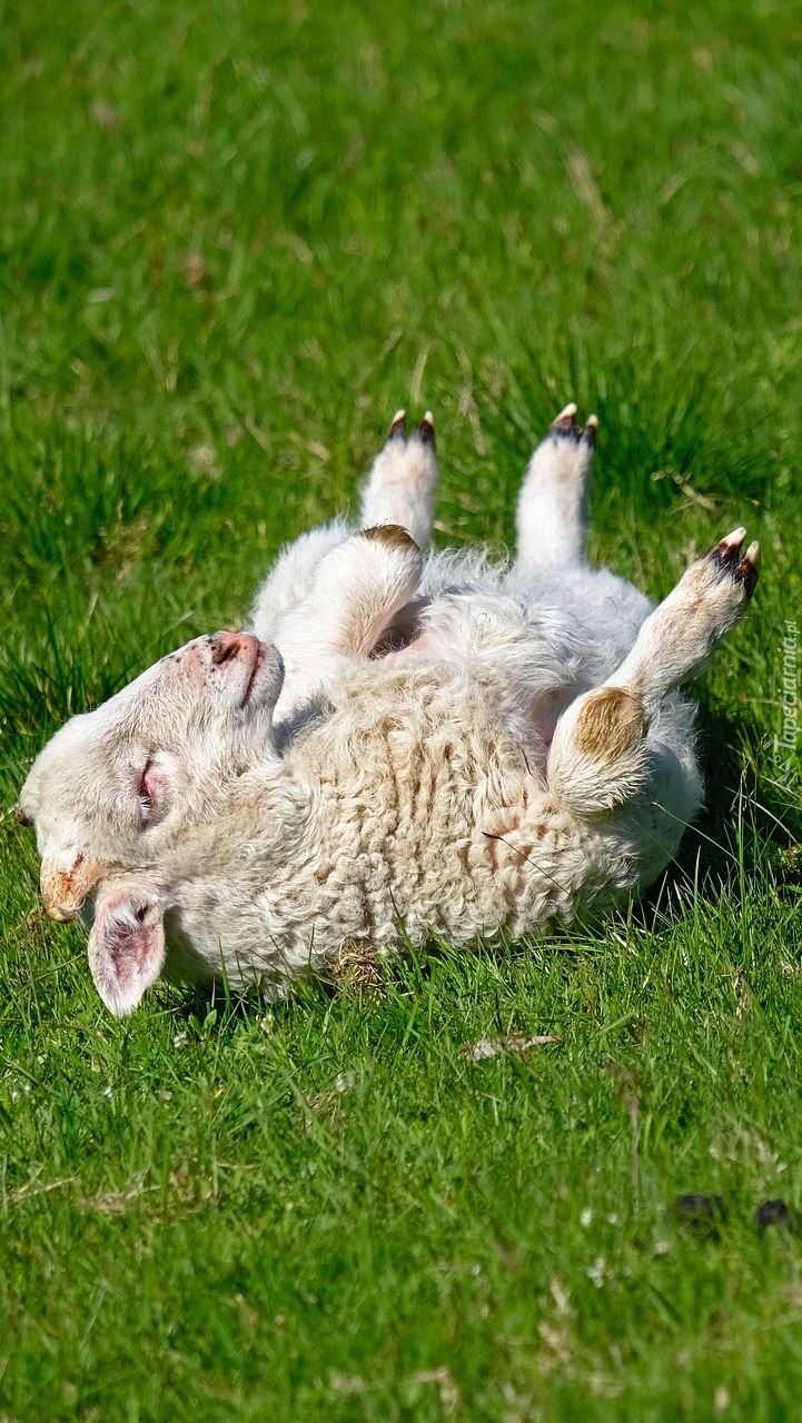 Edytor tapety: Owieczka leżąca na trawie
