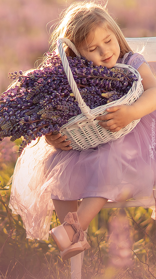 Edytor tapety: Dziewczynka trzymająca koszyk z łubinem