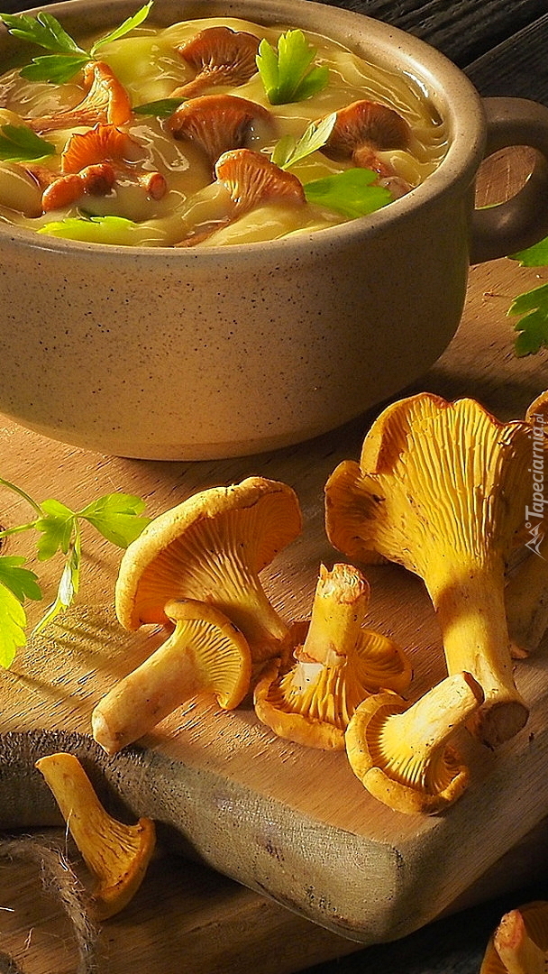 Edytor tapety: Kurki obok miseczki z zupą