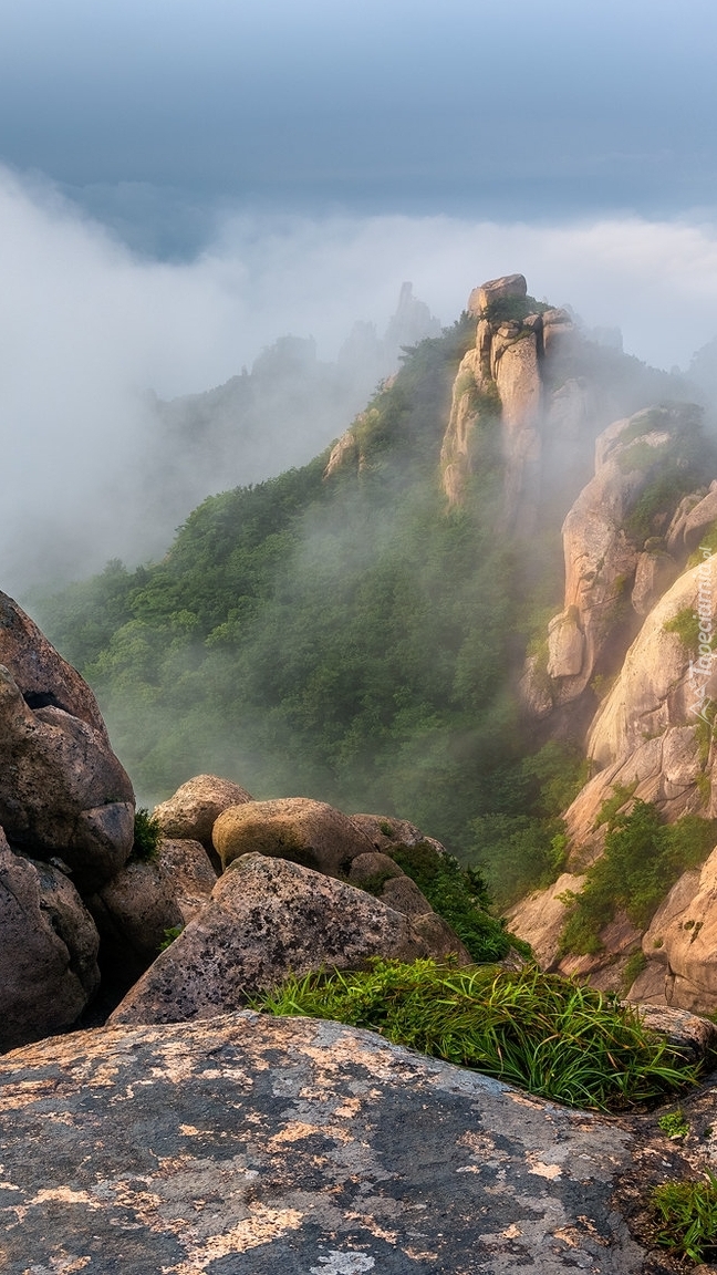 Edytor tapety: Góry Wolchulsan we mgle