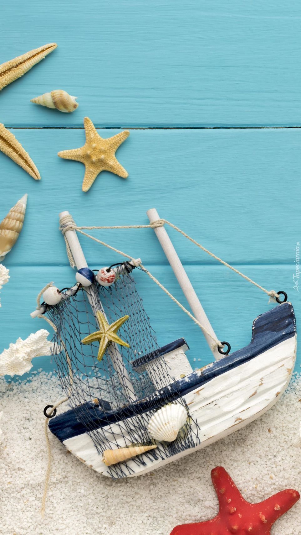 Edytor tapety: Statek obok rozgwiazdy na piasku
