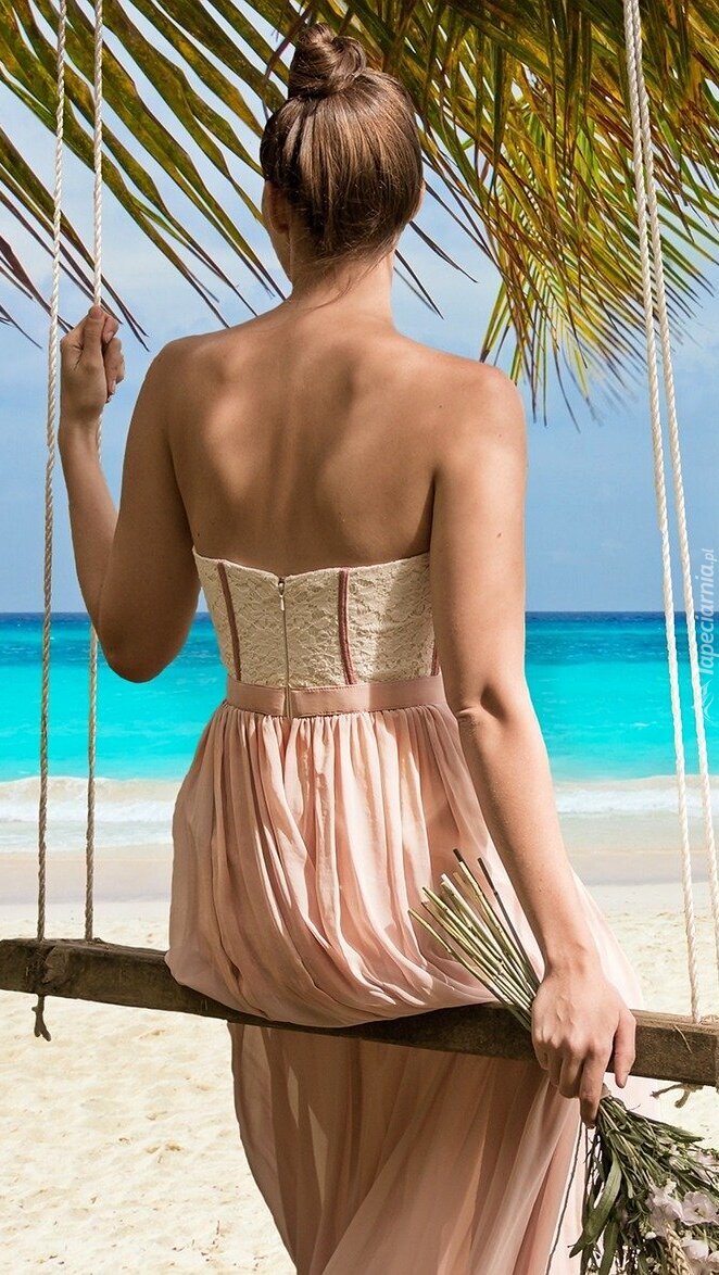 Edytor tapety: Kobieta na huśtawce nad morzem