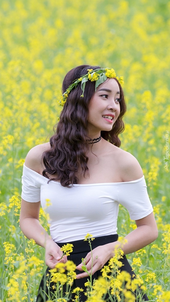 Edytor tapety: Azjatka na polu rzepaku