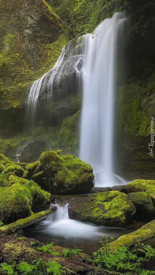 Edytor tapety: Omszałe kamienie przy wodospadzie