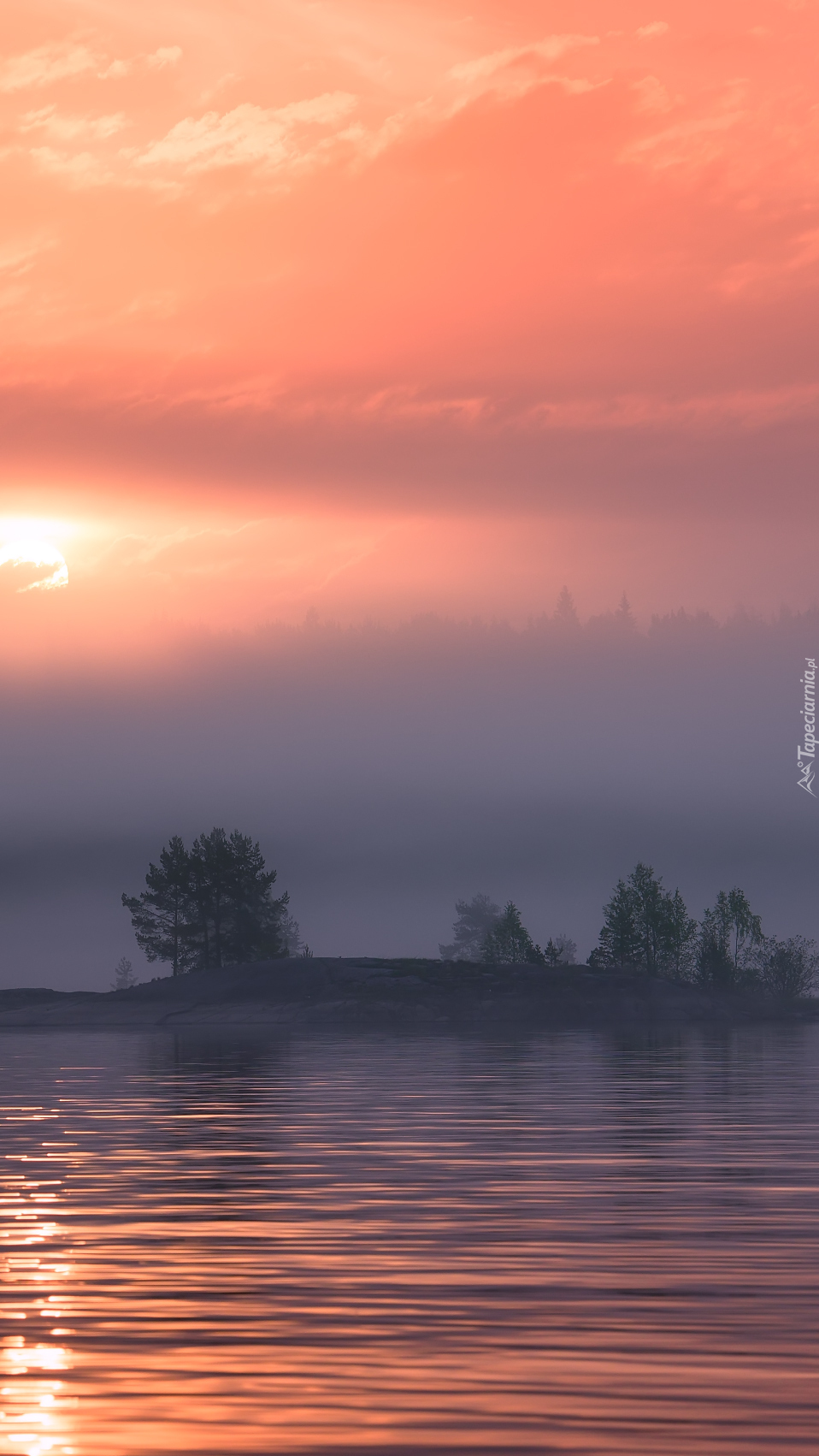 Edytor tapety: Opadająca mgła nad jeziorem Ładoga