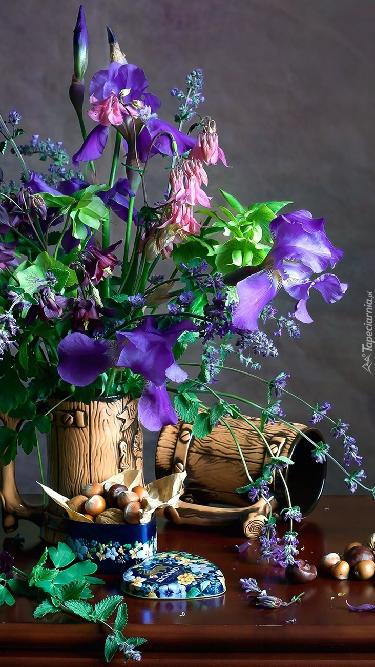 Edytor tapety: Bukiet kolorowych kwiatów w kuflu