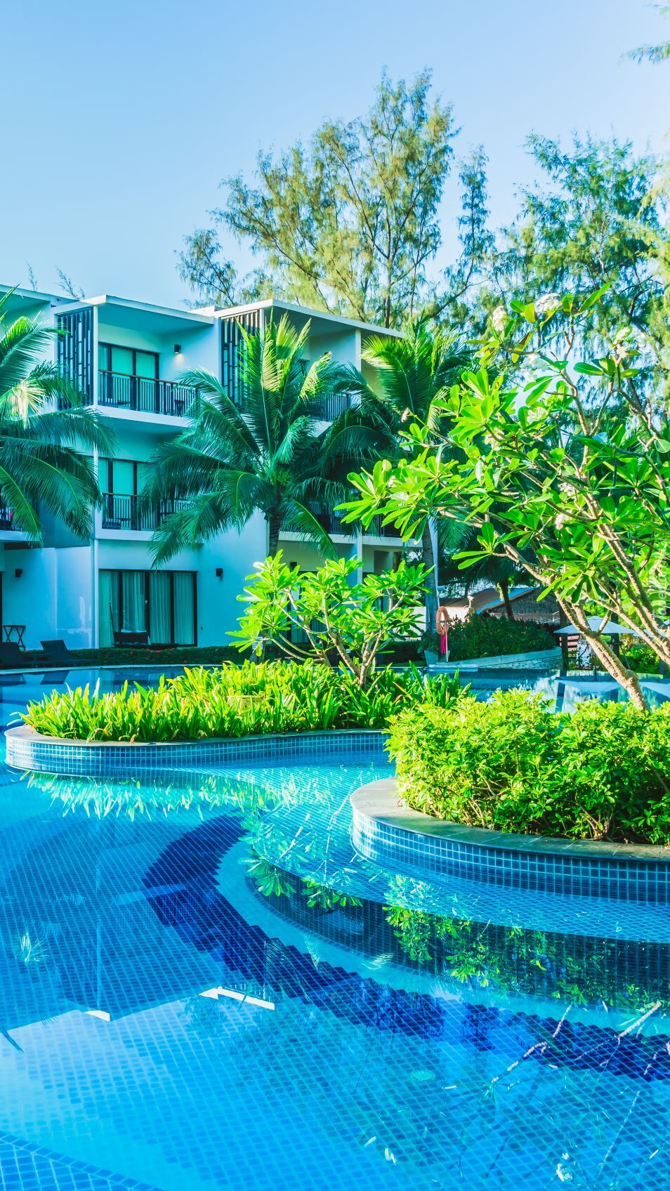 Edytor tapety: Drzewa przy basenie