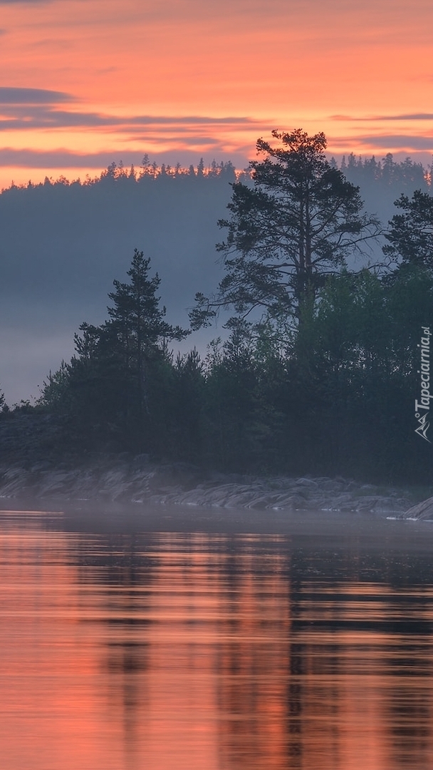 Edytor tapety: Drzewa nad jeziorem Ładoga