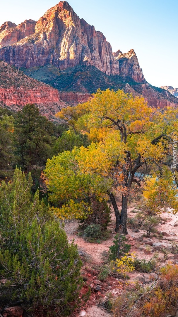 Edytor tapety: Jesienne drzewa i góra Watchman