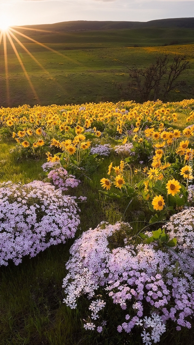 Edytor tapety: Balsamorhiza i floksy na łące