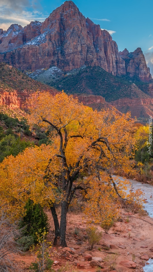 Edytor tapety: Jesienne drzewa na tle gór Watchman