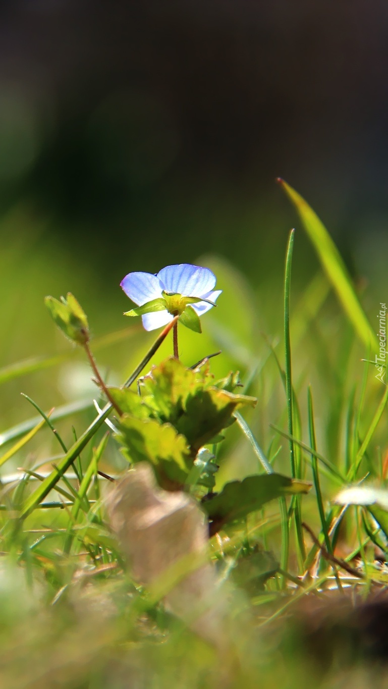 Edytor tapety: Malutki niebieski kwiatek w trawie