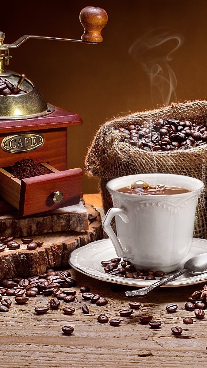 Edytor tapety: Młynek obok filiżanki kawy