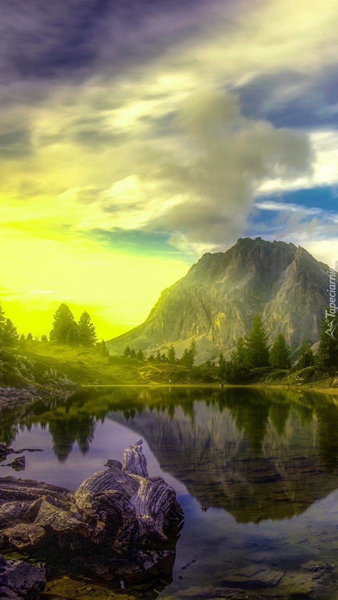 Edytor tapety: Odbicie góry w jeziorze