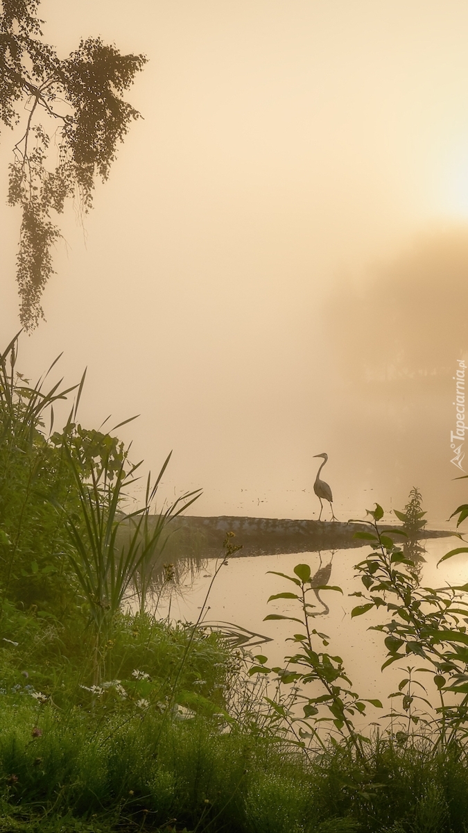 Edytor tapety: Czapla nad jeziorem
