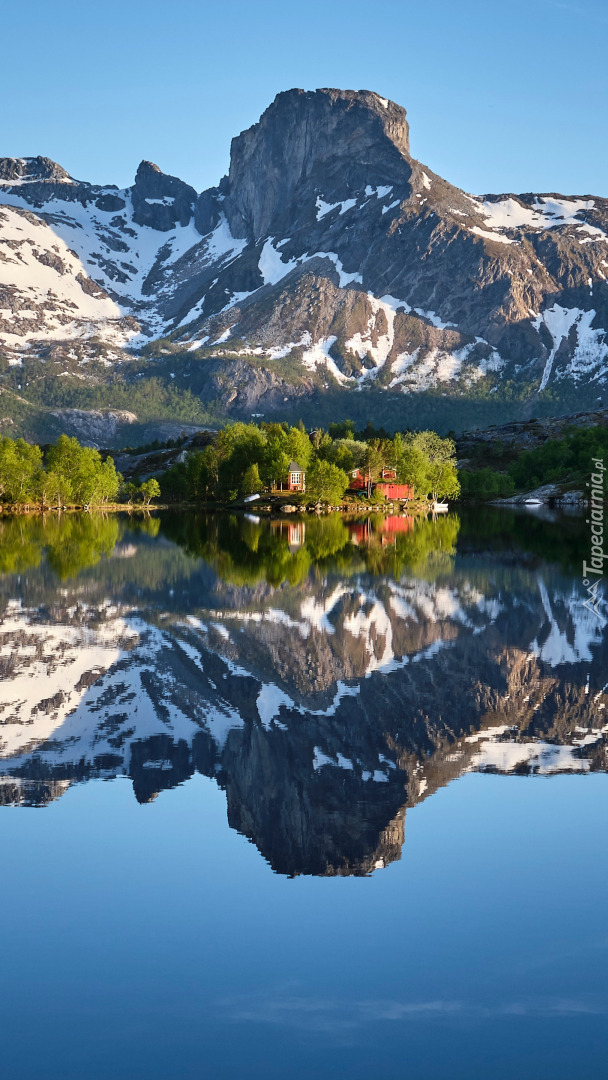 Edytor tapety: Odbicie gór w jeziorze