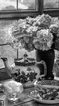 Edytor tapety: Hortensje przy oknie