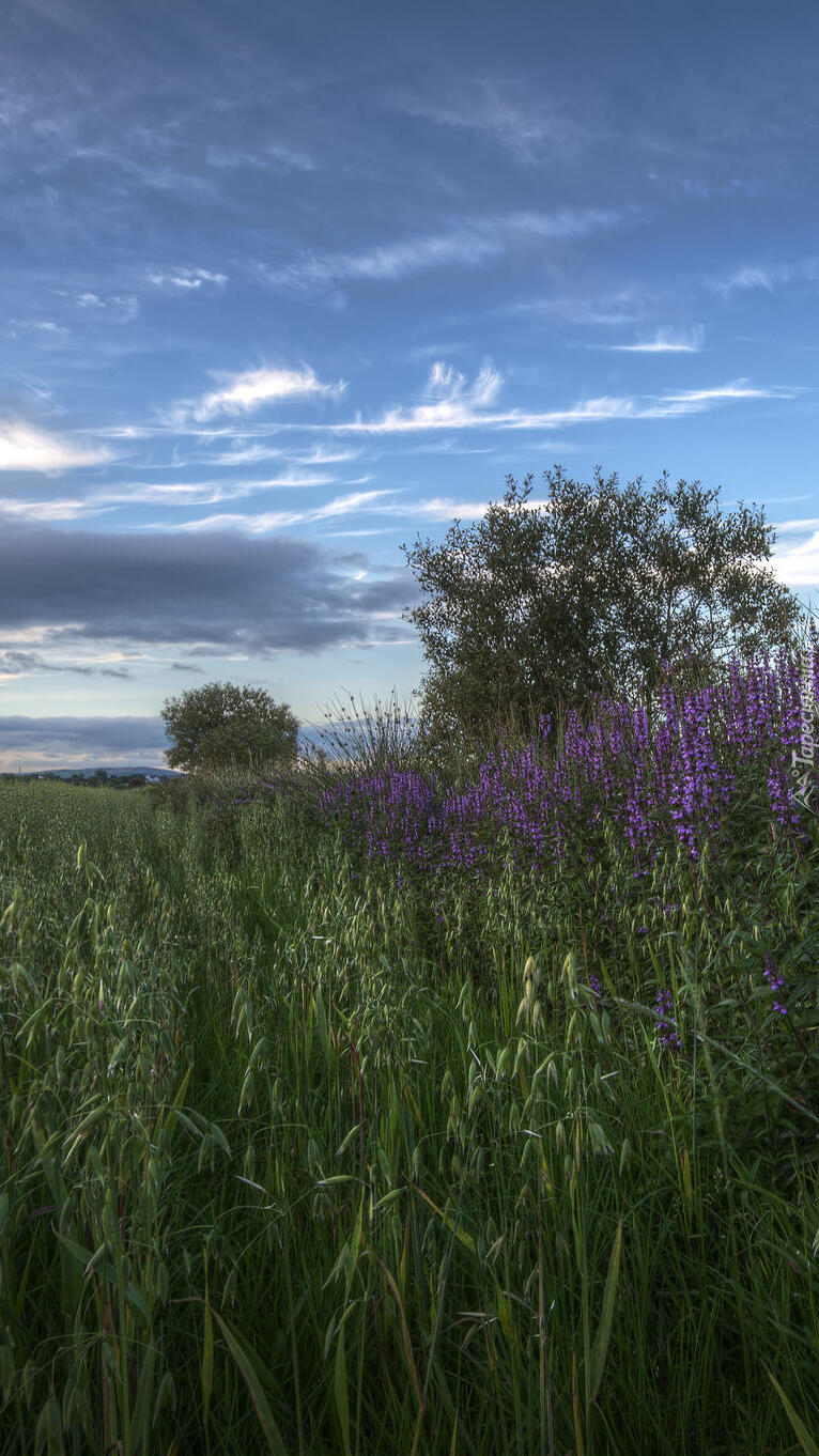 Edytor tapety: Polne kwiaty i drzewa na polu