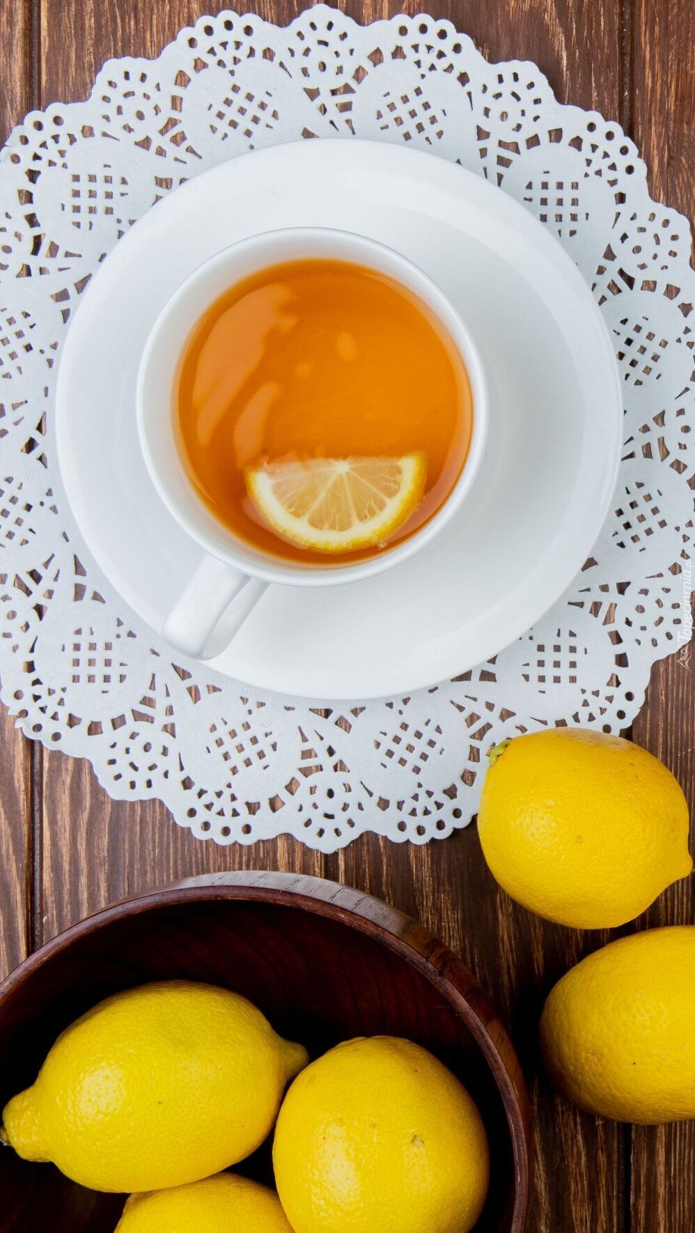 Edytor tapety: Cytryny obok filiżanki herbaty