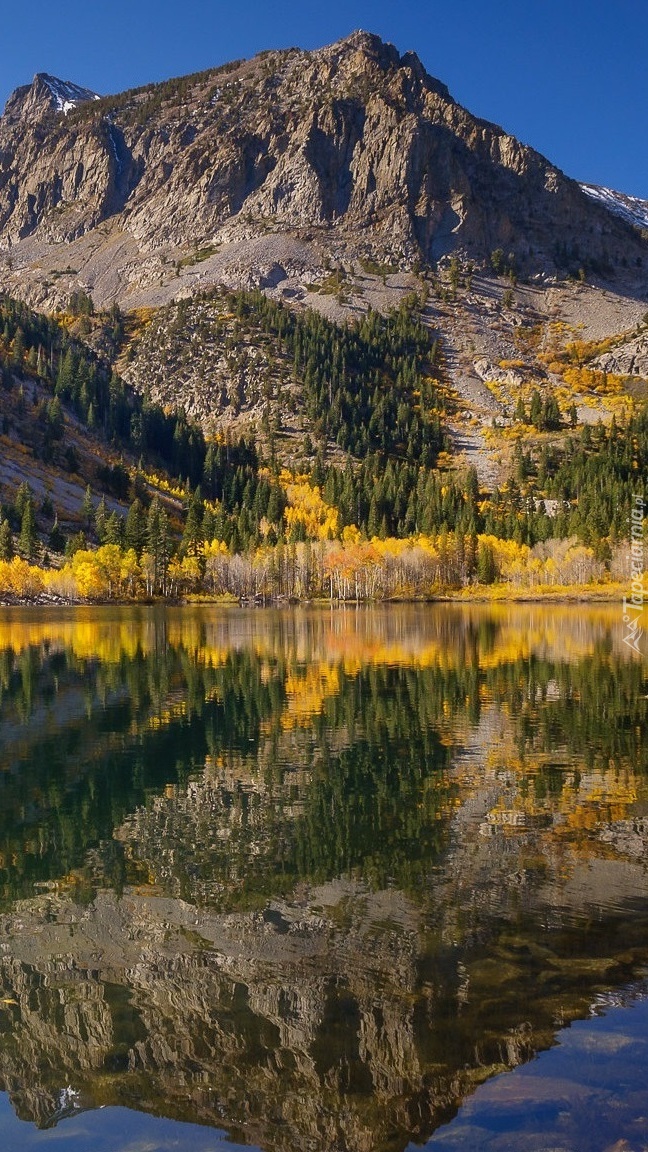 Edytor tapety: Pożółkłe drzewa nad jeziorem
