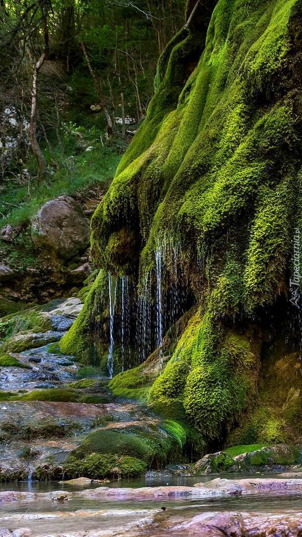Edytor tapety: Omszała skała nad strumykiem