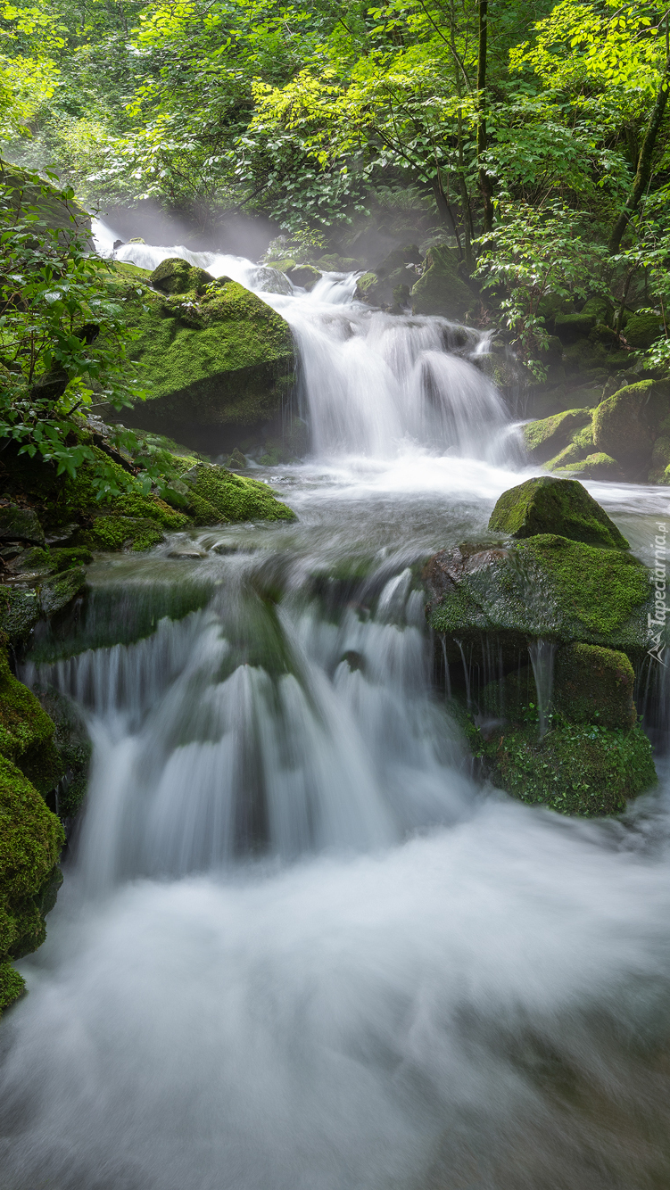 Edytor tapety: Rwący strumień w lesie