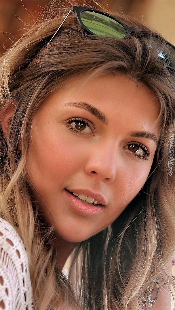 Edytor tapety: Szatynka z okularami na włosach