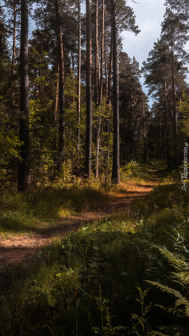 Edytor tapety: Wysokie drzewa przy drodze