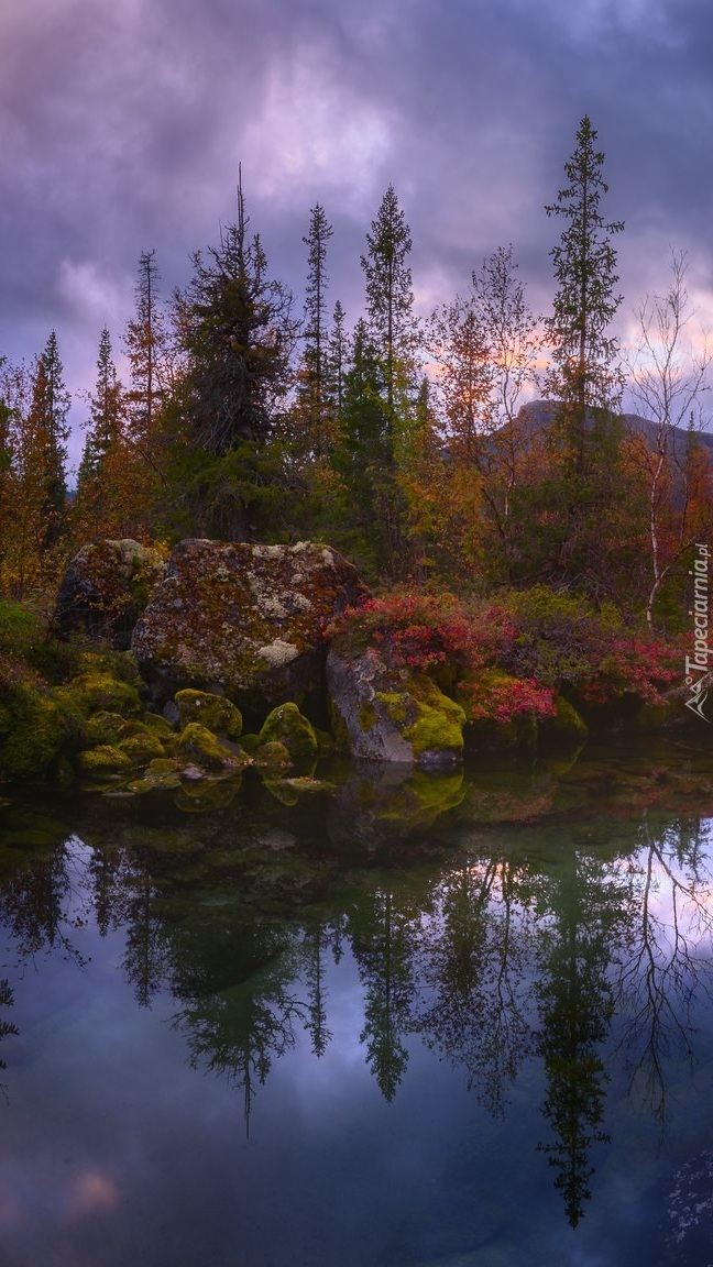 Edytor tapety: Kolorowe krzewy i drzewa nad jeziorem