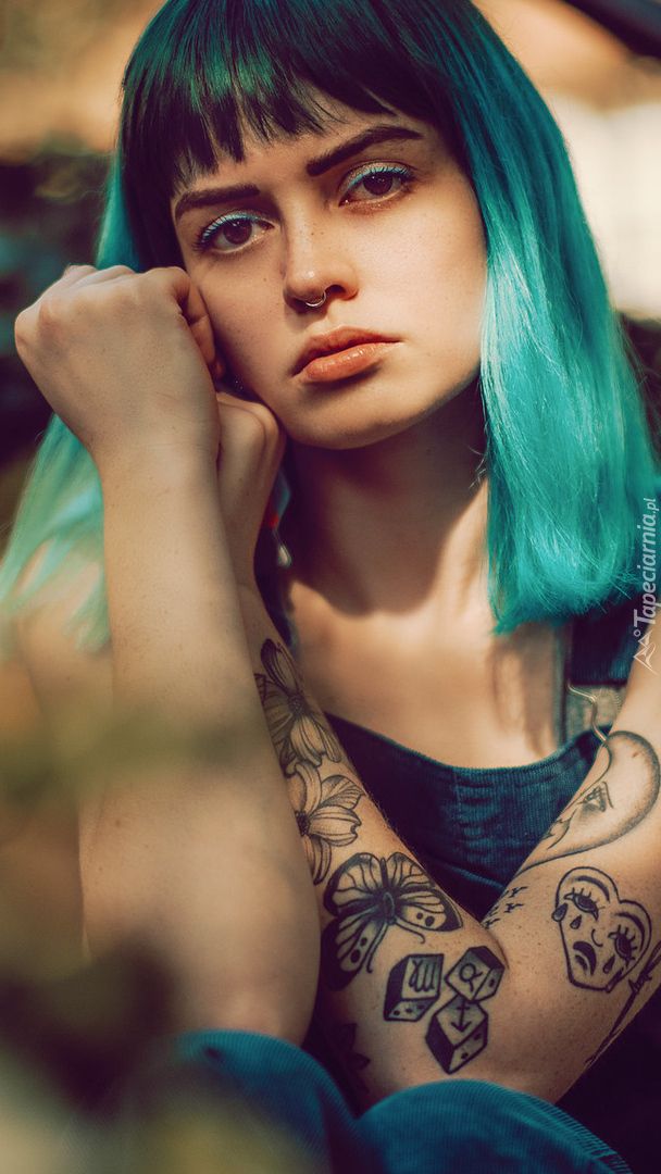 Edytor tapety: Dziewczyna z tatuażem i turkusowymi włosami