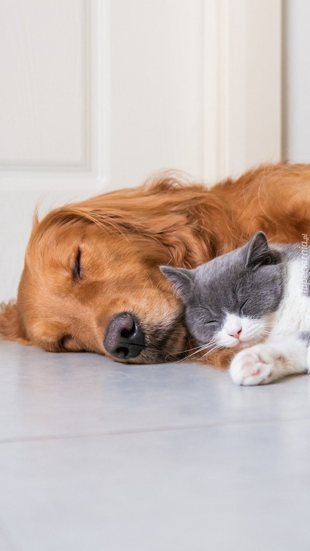 Edytor tapety: Śpiący pies z kotem