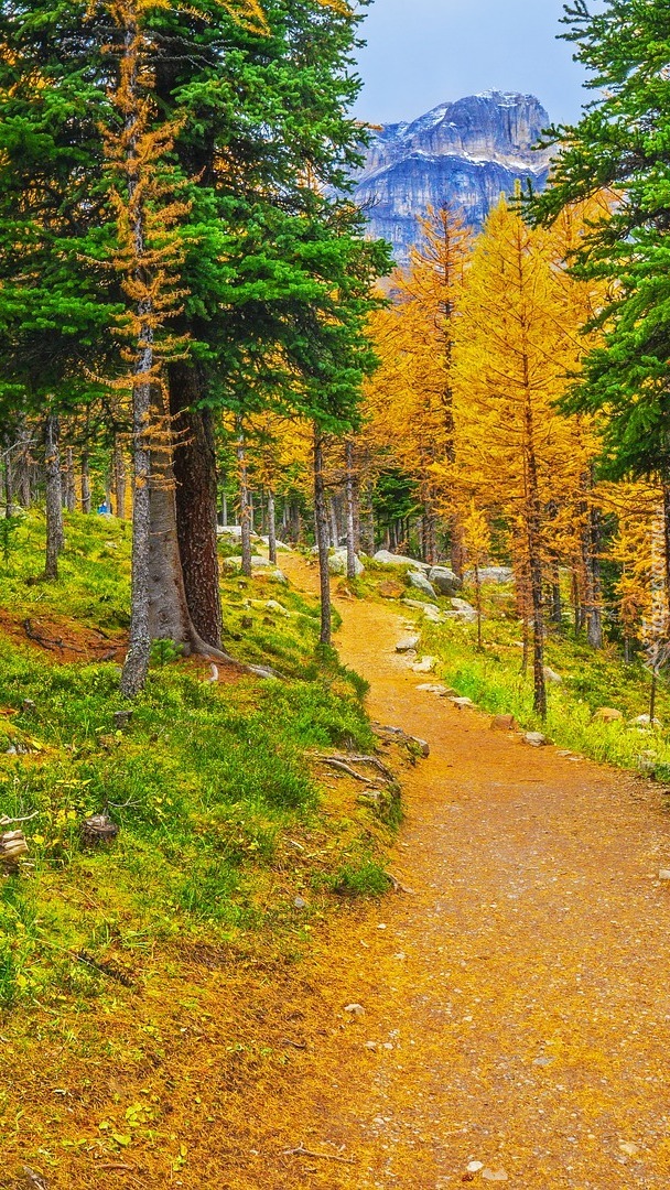 Edytor tapety: Jesienne drzewa na tle górskich szczytów