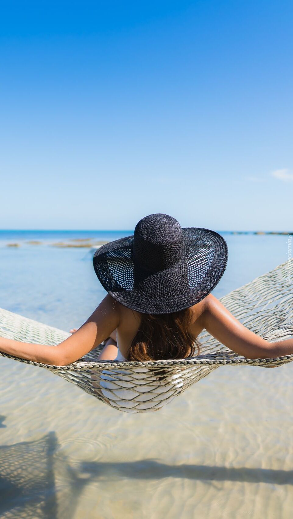 Edytor tapety: Kobieta w kapeluszu na hamaku