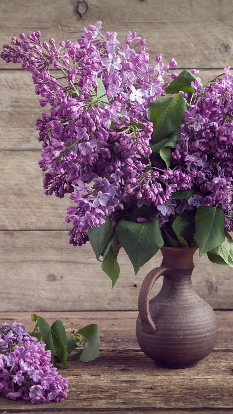 Edytor tapety: Bukiet fioletowego bzu w dzbanku
