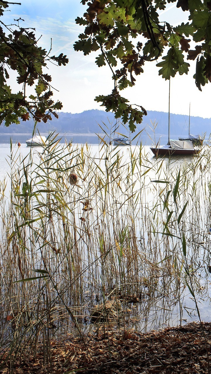 Edytor tapety: Trzcina nad brzegiem jeziora Simssee